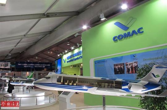 中國商用飛機有限責(zé)任公司攜C919大型客機模型、ARJ21-700新支線飛機模型參加范堡羅國際航空展。來源:參考消息
