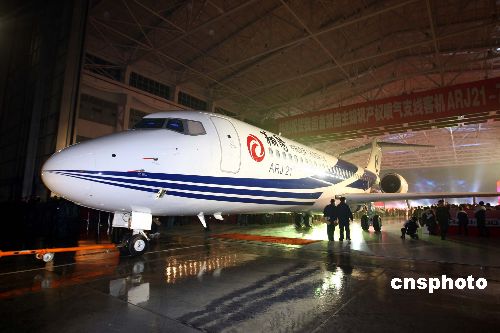 資料圖:中國首架自主知識產權噴氣支線客機ARJ21-700飛機