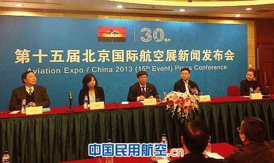3月27日,第十五屆北京國際航空展新聞發布會在京召開,中航工業集團辦公廳副主任付明耀、中國商飛公司市場營銷部陸崢、香港華進公司總裁祁理權等人出席了發布會。付明耀介紹了中航工業取得的新發展,以及中航工業在此次北京航展中的參展情況。