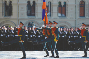當?shù)貢r間8日10時(北京時間14時),俄羅斯莫斯科紅場舉行盛大閱兵,慶祝衛(wèi)國戰(zhàn)爭勝利68周年。俄羅斯總統(tǒng)普京和總理梅德韋杰夫出席了此次閱兵。俄羅斯新任國防部長紹伊古檢閱了部隊。今年的“勝利日”閱兵仍按照迎軍旗、閱兵式和分列式三部分進行,閱兵式持續(xù)了約1個小時。此次閱兵,集結(jié)了68架俄羅斯主戰(zhàn)飛機的空中受閱編隊成為最大看點。
