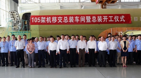 ARJ21新支線飛機105架機移交總裝車間開工