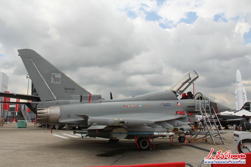 第50屆法國巴黎航展17日-23日在巴黎郊區的布爾歇機場開幕,眾多國際知名的新型軍民用飛機匯聚巴黎。圖為歐洲“臺風”戰斗機靜態展示。(李志偉 攝影)