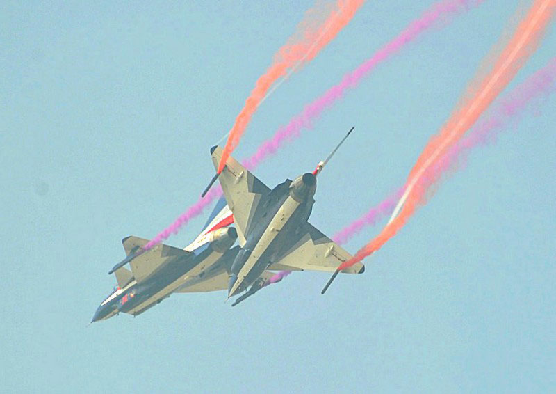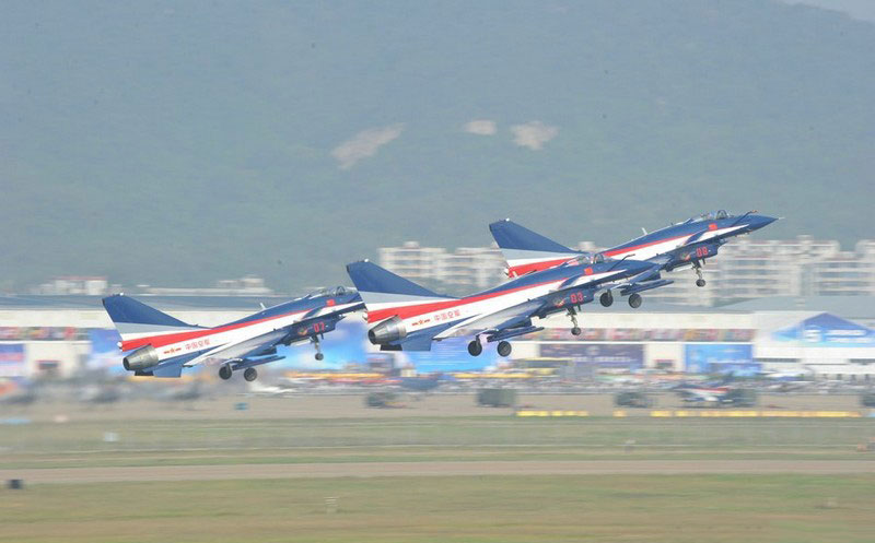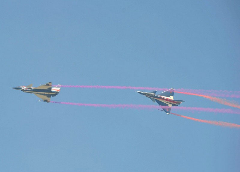 【環(huán)球網(wǎng)赴珠海航展特派報(bào)道組綜合報(bào)道】第九屆中國(guó)國(guó)際航空航天博覽會(huì)(珠海航展2012)將于11月13日-18日在廣東省珠海市金灣區(qū)三灶鎮(zhèn)隆重舉行。開(kāi)展當(dāng)日,中國(guó)空軍八一飛行表演隊(duì)的6架殲-10戰(zhàn)機(jī)翱翔藍(lán)天,漫步云端。