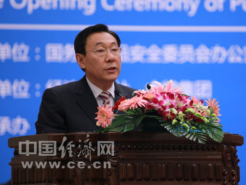 國務院食品安全委員會辦公室主任張勇在第三屆食品安全論壇上致辭 王維亮攝