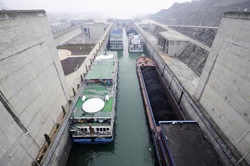 2008年2月23日,船舶在三峽船閘閘室內(nèi)等待過閘。2009年6月17日,三峽船閘安全穩(wěn)定通航6年,發(fā)揮了巨大的通航效益。截至6月底,三峽船閘累計(jì)運(yùn)行近5萬(wàn)閘次,過閘貨運(yùn)量突破3億噸。新華社記者杜華舉攝