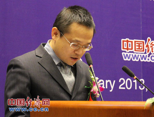 中國科學(xué)院預(yù)測(cè)科學(xué)研究中心1月26日(周五)在北京中科院數(shù)學(xué)與系統(tǒng)科學(xué)研究院舉辦“2013年中國經(jīng)濟(jì)預(yù)測(cè)發(fā)布與研討會(huì)”。圖為科學(xué)出版社經(jīng)濟(jì)管理出版分社社長陳亮致辭。中國經(jīng)濟(jì)網(wǎng)楊瀟/攝影